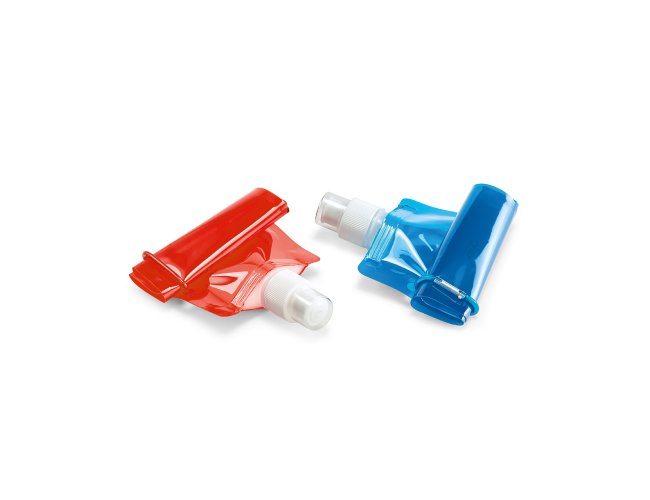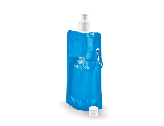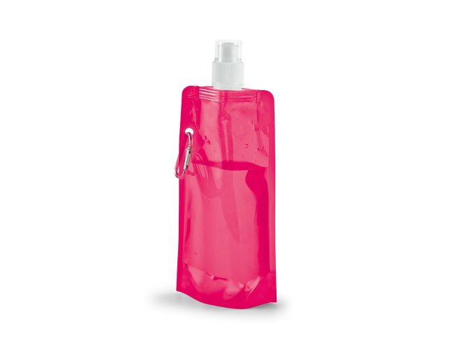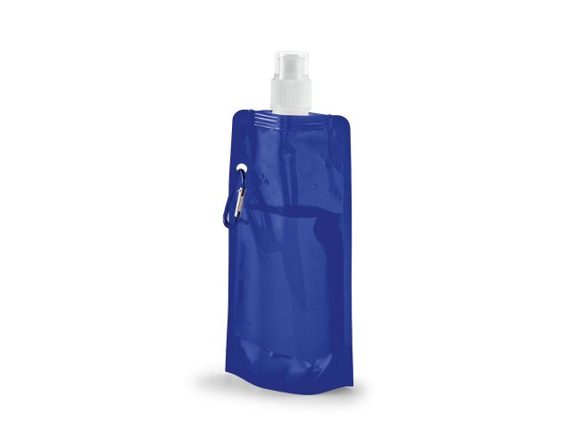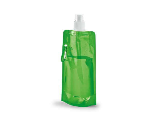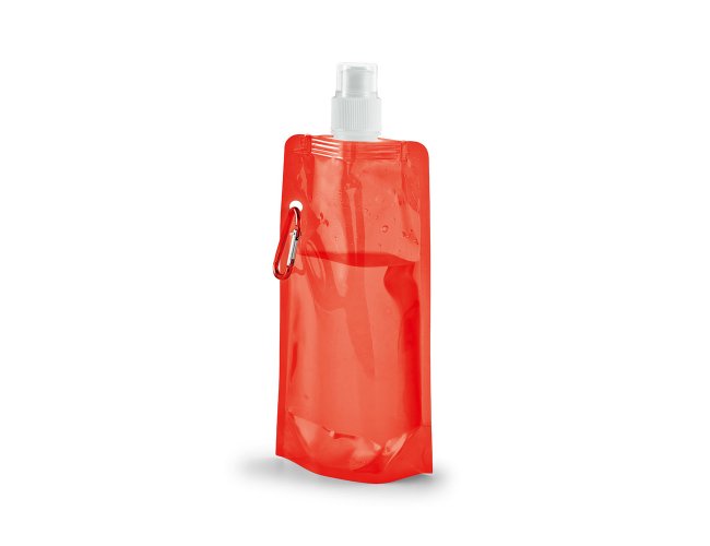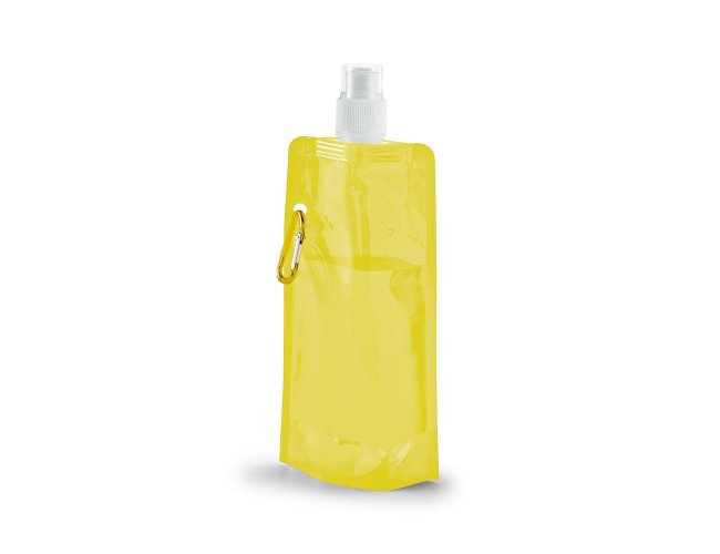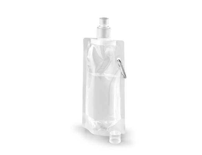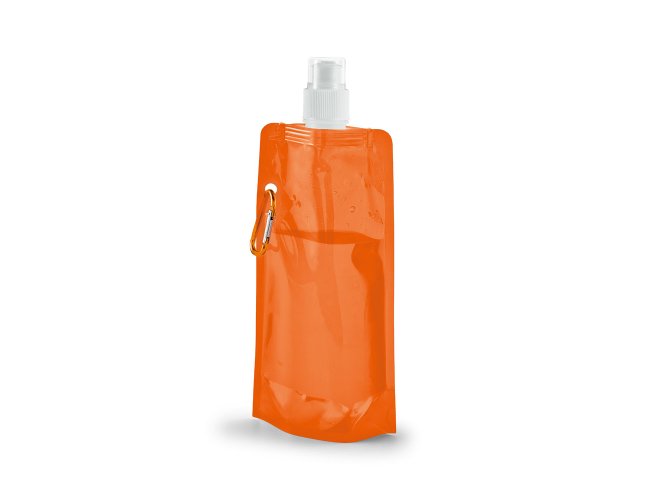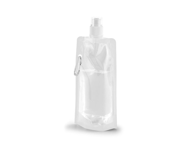 Squeze dobrável em PE com bico de sistema "push-pull" e acabamento translúcido. Contém uma tampa transparente e um mosquetão. Capacidade até 460 ml. Food grade. 110 x 218 x 64 mm