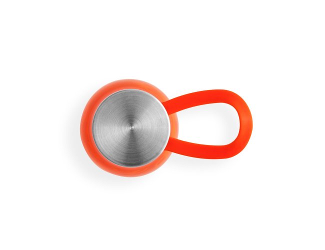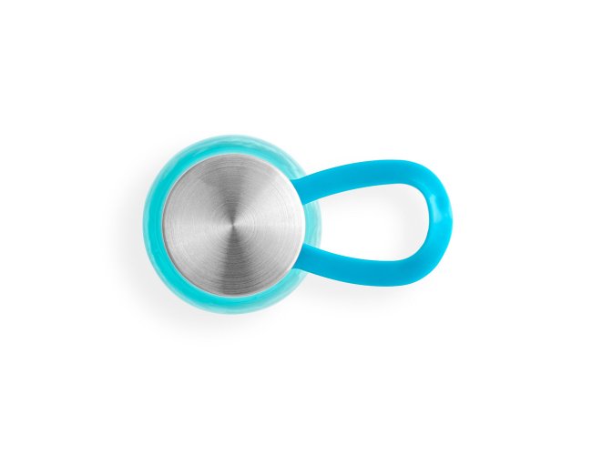 Squeeze produzido a partir de plástico reciclado, rPET. Com alça de silicone para facilitar o transporte. Tampa em PP e aço inox com isolante em silicone. Capacidade até 590 ml.