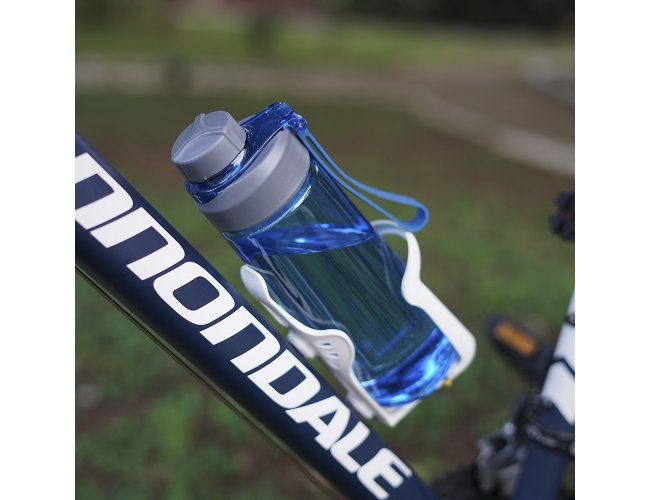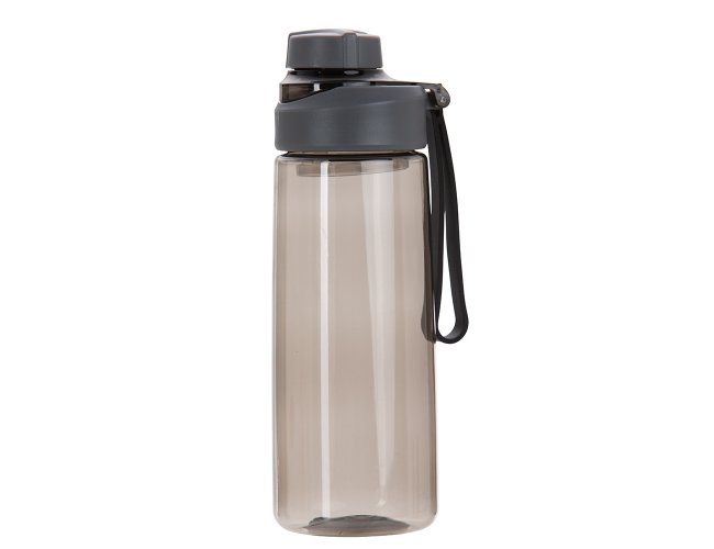 Squeeze plástico com capacidade de 550m. Possui tampa rosqueável protetora com trava de segurança e botão de acionamento. Squeeze com acabamento fosco, detalhes ondulado e alça de nylon para transporte.