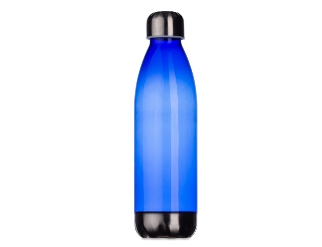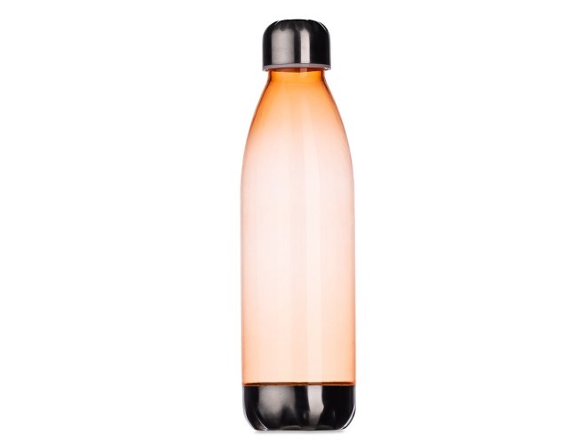 Squeeze plástico 700ml formato garrafa. Corpo transparente colorido, possui tampa e base em alumínio.
