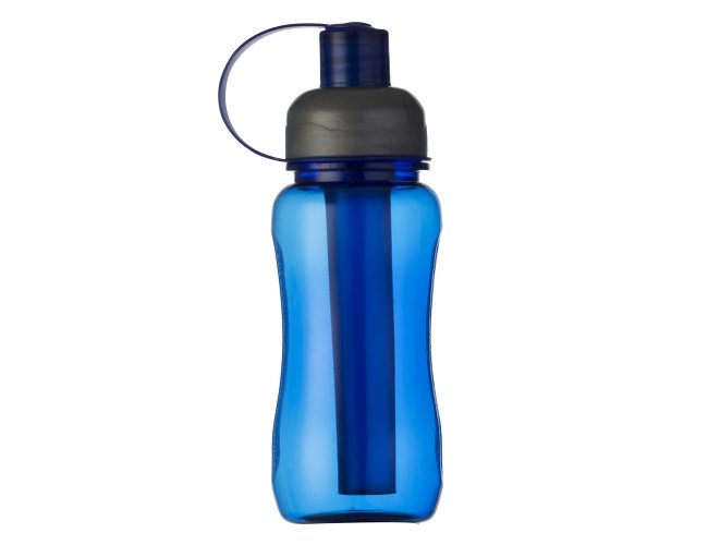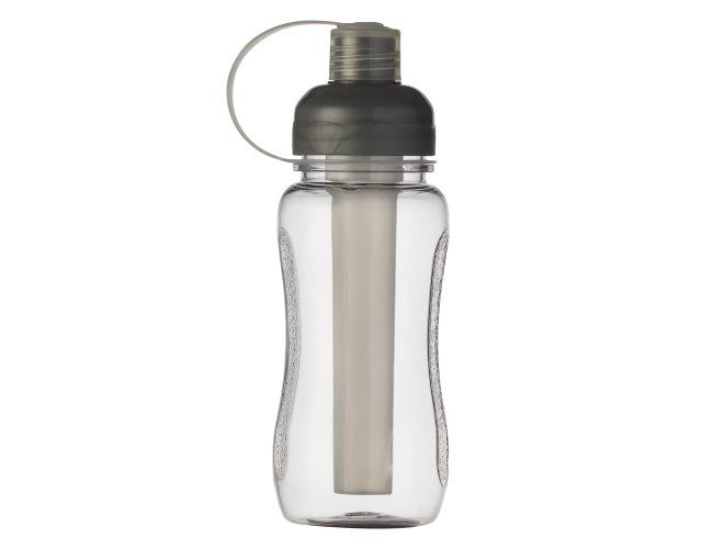 Squeeze plástico 400ml ice bar. Squeeze colorido acinturado com detalhe retangular texturizado nas laterais, possui tampa cinza com detalhe ondulado ao redor e tampa com alça para o bico. Parte interna possui uma barra congelante(desencaixe a barra da tampa), encha a barra e coloque no congelador/freezer para gelar e depois e só colocar novamente no squeeze.