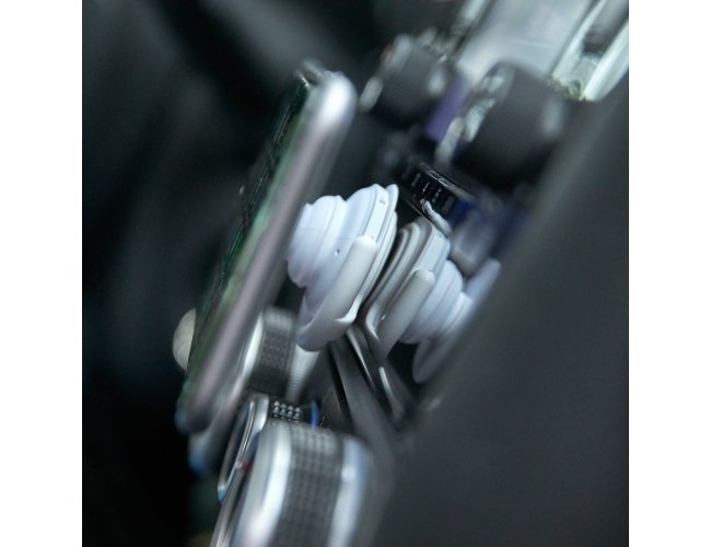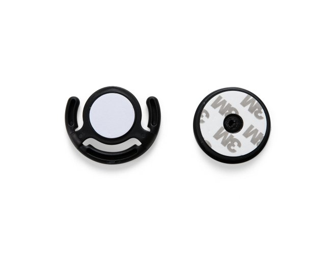 Suporte plástico para celular. Material plástico colorido, possui “disco” anelar retrátil que ao puxá-lo abrirá o encaixe para os dedos e possibilitará a rotação da peça. Base plástica para encaixe, pode ser colada no celular, paredes, vidros, ou onde desejar afim de que possa encaixar o suporte anelar. Suporte e base com adesivos, basta remover a proteção e colar no local desejado.