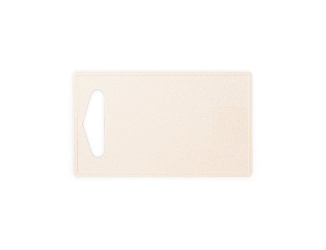 Tábua de corte em fibra de bambu (50%) e PP (50%). Contém um quadrado liso no fundo da tábua, adequado para a personalização.