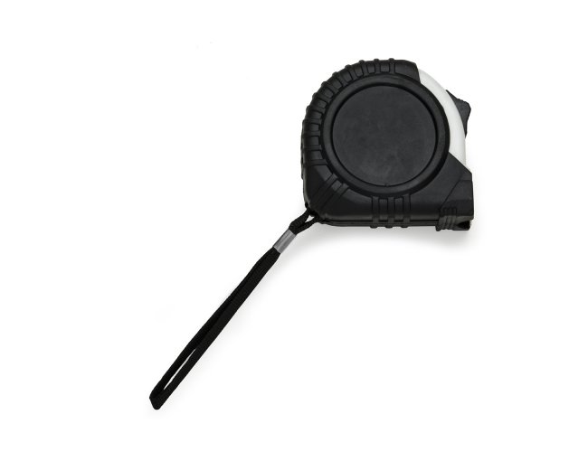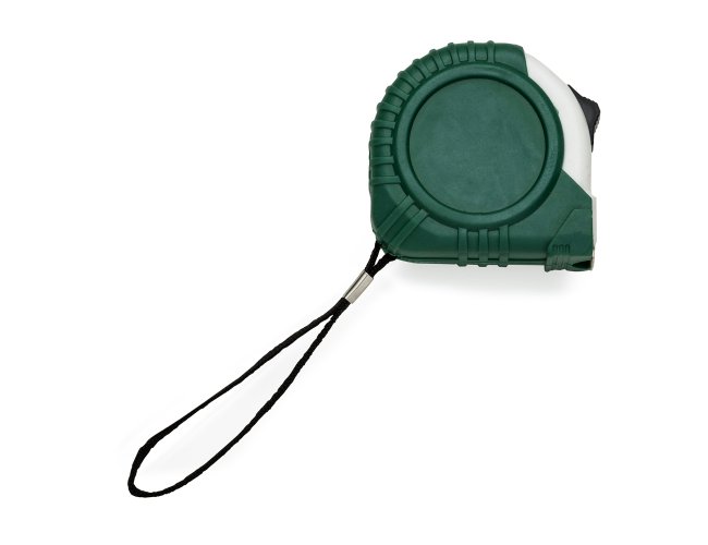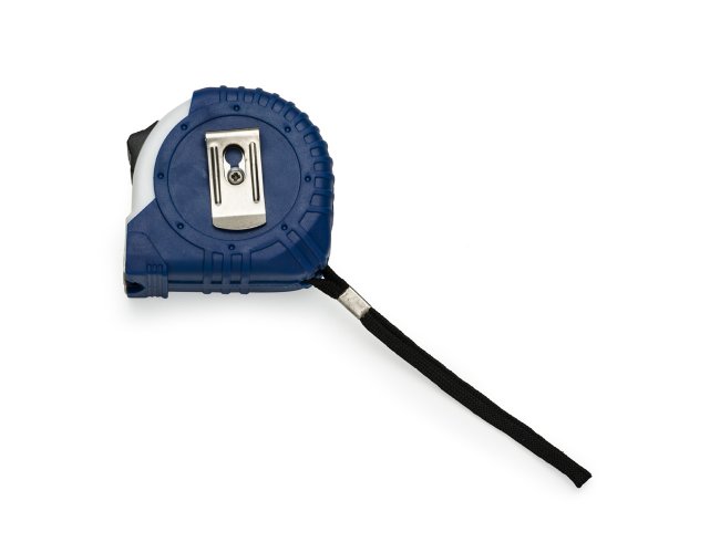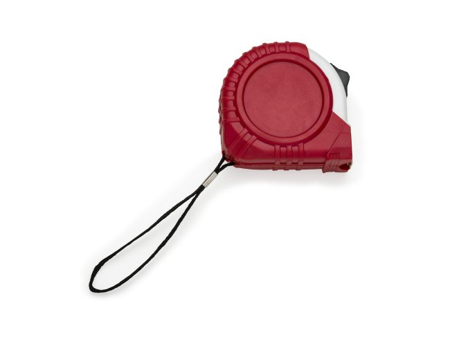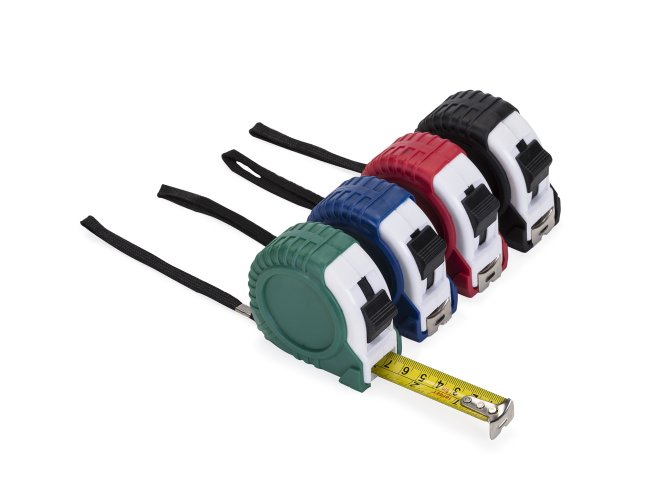 Trena de 5 metros colorida emborrachada com relevo e detalhe plástico branco. Possui trava, prendedor de metal em um dos lados e acompanha cordão de nylon.